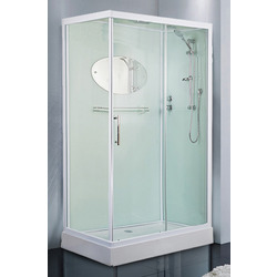 В прошлом году прикупила себе в загородную хату душевую кабину прямоугольной формы под названием Esbano ESE-118CKR. Заказывала по интернету. Ждала около месяца. Зато установили мне ее знакомые мужички за полдня. Я думала, что провозятся дольше. Внешне к душевой никаких претензий. Но когда заходишь внутрь, мне мерещится, что она легонько пошатывается. Возможно, просто бзик. Все прибамбасы душевой мне пришлись по душе. Очень приглянулся тропический ливень. Пользуюсь им постоянно, такие приятные ощущения! Моим домашним тоже нравится постоять под струями, слегка обдаться. Летом вообще кабина работала почти без перерывов, образно говоря.