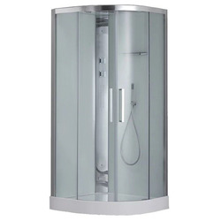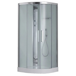 - Изделия со скругленным фасадом и поддоном разной высоты. Стекло, которое здесь используется, может быть, как полностью прозрачным, так и обладать эффектом тонирования или колорирования.