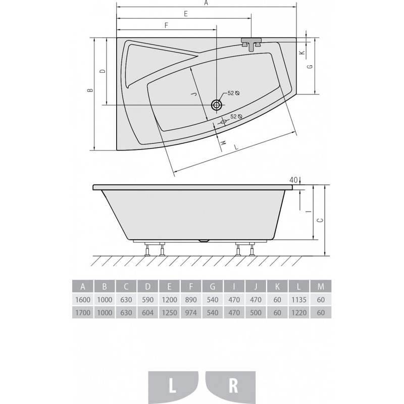 Акриловая ванна ALPEN Evia 160 R
