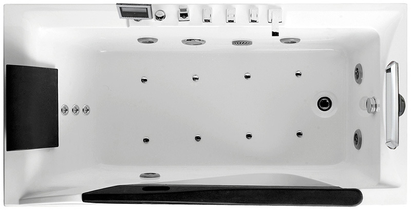 | Дополнительные характеристики | Модификация: правосторонняя; Антискользящее покрытие: нет; Подголовник:есть, в комплекте; Ручки:нет; Слив-перелив:есть, в комплекте; Каркас:есть в комплекте; Ножки:нет; Комплектация:смеситель с изливом, душевая лейка, съемная панель; Мультимедиа:TV 8", пу |