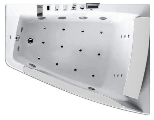 | Дополнительные характеристики | Модификация: правосторонняя; Антискользящее покрытие: нет; Подголовник:есть, в комплекте; Ручки:нет; Слив-перелив:есть, в комплекте; Каркас:есть в комплекте; Ножки:нет; Комплектация:смеситель с изливом, душевая лейка, съемная панель; Мультимедиа:радио, Bl |