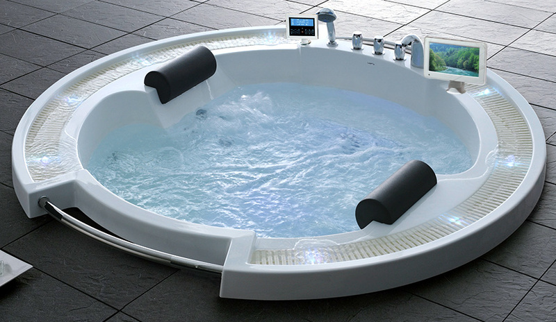 | Дополнительные характеристики | ; Антискользящее покрытие: нет; Подголовник:есть, в комплекте; Ручки:нет; Слив-перелив:есть, в комплекте; Каркас:есть в комплекте; Ножки:нет; Комплектация:смеситель с изливом, душевая лейка; Мультимедиа:TV 8", пульт ДУ, радио |