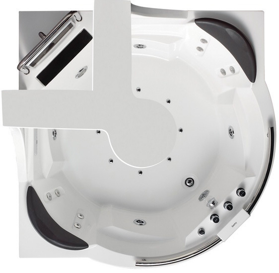 | Дополнительные характеристики | ; Антискользящее покрытие: нет; Подголовник:есть, в комплекте; Ручки:нет; Слив-перелив:есть, в комплекте; Каркас:есть в комплекте; Ножки:нет; Комплектация:смеситель с изливом, тропический душ, душевая лейка, съемная панель; Мультимедиа:TV 15", пульт ДУ, C |