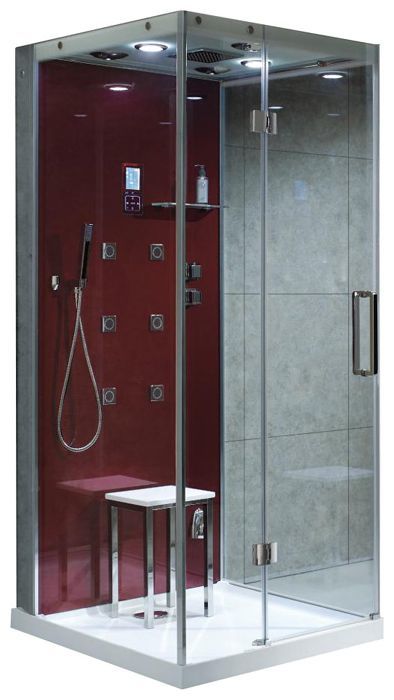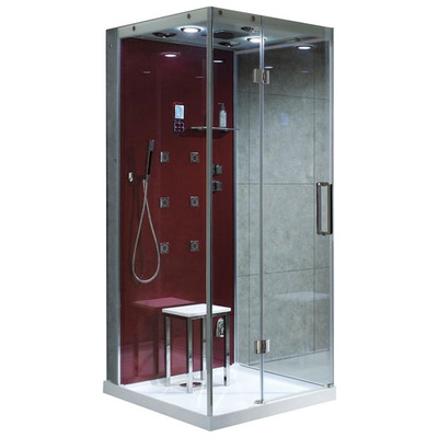| Оснащение | Встроенное сидение, поддон, полки, душевая лейка. |