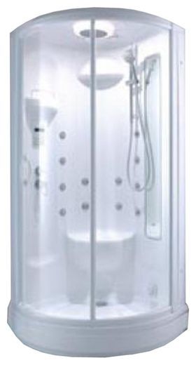 | Дополнительные характеристики | Ограждение: полностенное Количество створок двери: 1 Толщина передних стенок: 6 мм Массаж: вертикальный гидромассаж, гидромассаж спины, гидромассаж зоны шеи Количество форсунок для вертикального массажа: 15 Дополнительные функции: турецкая баня, тропическ |