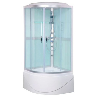 Оснащение Встроенное сиденье, поддон, полки, душевая лейка.