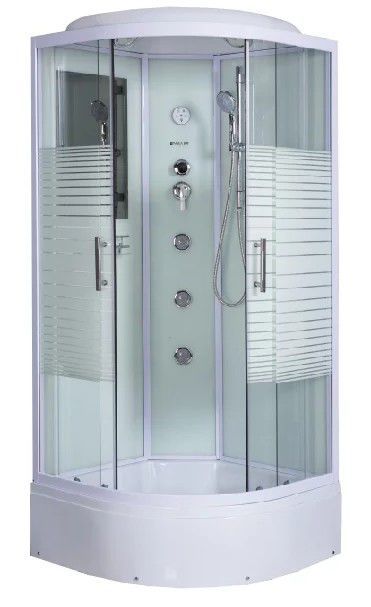 | Дополнительные характеристики | Верхняя подсветка, Радио, Вентиляция, Гидромассаж спины, Вертикальный гидромассаж, Ограждение полностенное |