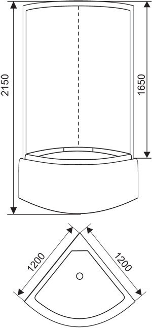 Оснащение Поддон, полки, душевая лейка, радио, свет, вентилятор