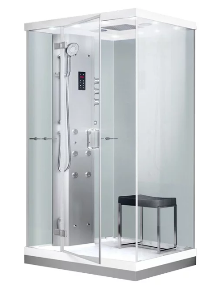 | Дополнительные характеристики | Ограждение: полностенное Материал передних стенок: стекло Толщина передних стенок: 8 мм Количество створок двери:1 Массаж: вертикальный гидромассаж, гидромассаж спины Дополнительные функции: турецкая баня, тропический душ, ароматерапия, вентиляция Дисплей |