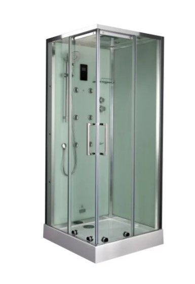 | Дополнительные характеристики | Кабина левосторонняя, ограждение полностенное, стеклянные передние стенки, толщина передних стенок 8 мм, 2 створки дверей, вертикальный гидромассаж, гидромассаж спины, 6 форсунок для вертикального массажа, турецкая баня, вентиляция, тропический душ, радио |