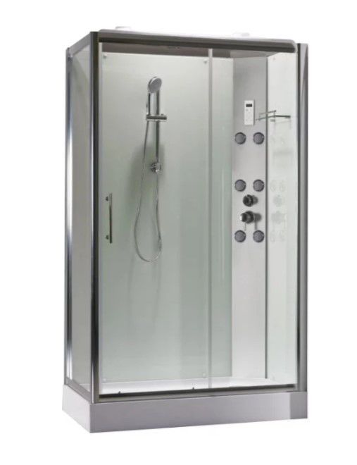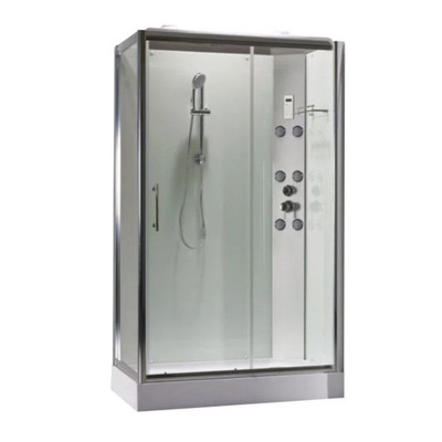 | Дополнительные характеристики | Кабина правосторонняя, ограждение полностенное, стеклянные передние стенки, толщина передних стенок 5 мм, одна створка дверей, вертикальный гидромассаж, гидромассаж спины, 6 форсунок для вертикального массажа, тропический душ, вентиляция, дисплей, классич |