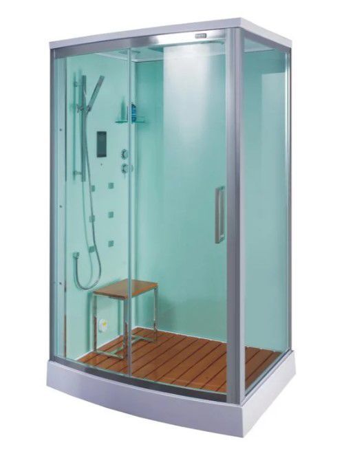 | Дополнительные характеристики | Кабина левосторонняя, ограждение полностенное, стеклянные передние стенки, толщина передних стенок 6 мм, 1 створка дверей, вертикальный гидромассаж, гидромассаж спины, 6 форсунок для вертикального массажа, вентиляция, ароматерапия, радио, дисплей, дистанц |