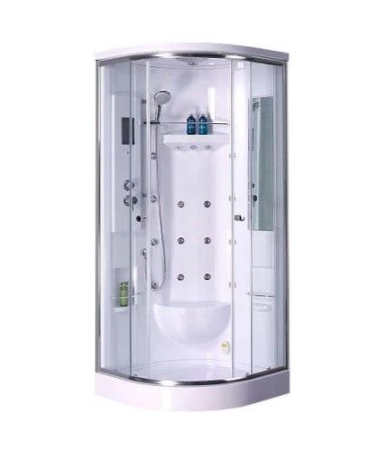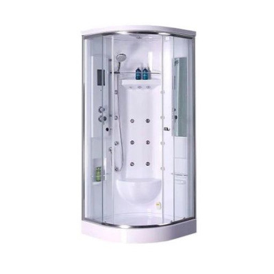 | Дополнительные характеристики | Ограждение полностенное, стеклянные передние стенки, толщина передних стенок 6 мм, 2 створки дверей, вертикальный гидромассаж, гидромассаж спины, гидромассаж зоны шеи, 17 форсунок для вертикального массажа, ароматерапия, вентиляция, радио, дисплей, дистан |