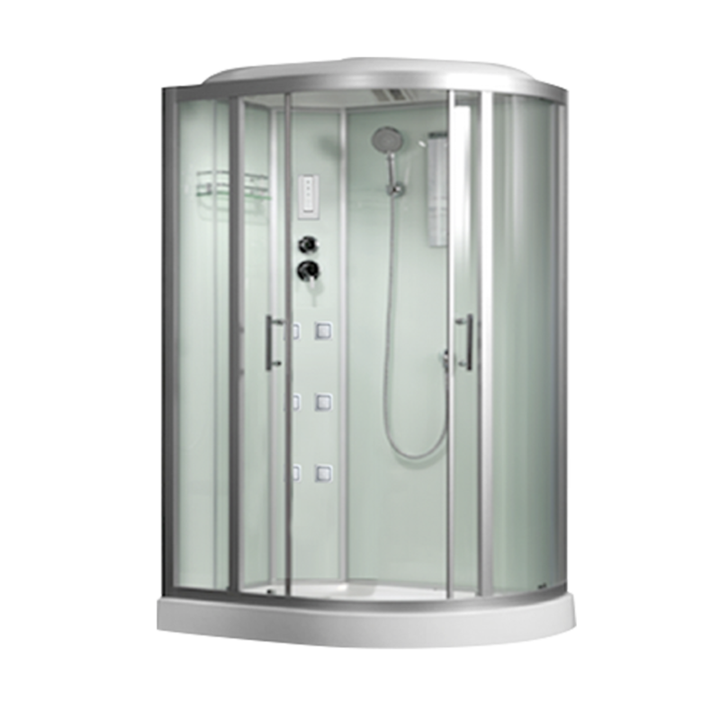 | Дополнительные характеристики | стекло 6 мм; двухсторонняя ручка из цинкового сплава; белый верхний душ, 6 форсунок; поддон на каркасе 100% акрил; двойные ролики; лейка на держателе; сифон с функцией сбора волос. |