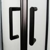 Конфигурация раздвижных дверей может отличаться: подвижной частью могут быть обе дверцы или только одна. Механизм может фиксировать дверь сверху и снизу, а может располагаться только на верхней штанге. Это уменьшает количество мест потенциального загрязнения, ведь мыть конструкцию в таком случае будет легче.