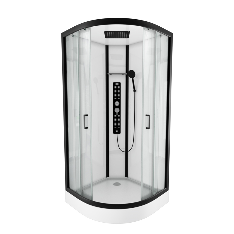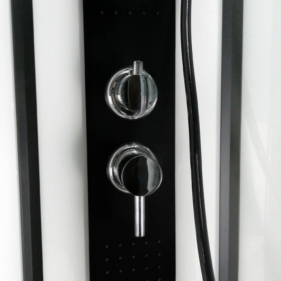 | Дополнительные характеристики | 5 мм супер белое закаленное заднее стекло; 5 мм прозрачное закаленное переднее стекло; 6 мм раздвижная дверь из закаленного стекла; 5 мм центральная гидромассажная панель в чёрном профиле; 6 мм супер белая закаленная стеклянная крыша с защитной пленкой |
