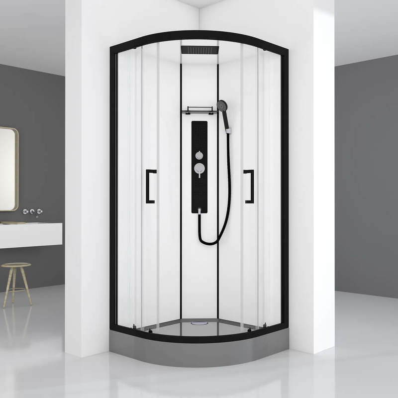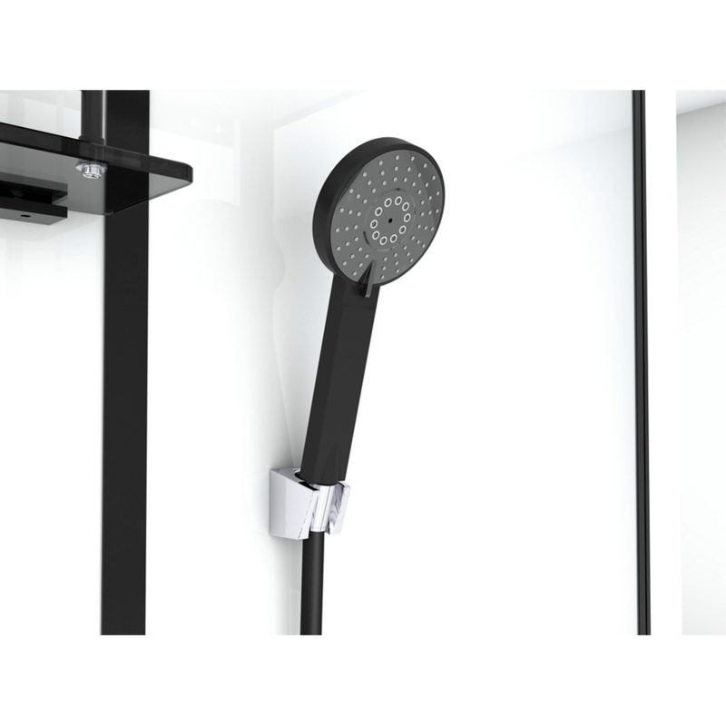 | Дополнительные характеристики | Закаленное стекло 6 мм. Черный матовый профиль. Усиленный гладкий шланг лейки. Надежные стальные ручки. |