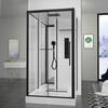 | Дополнительные характеристики | Закаленное стекло 6 мм. Боковые стекла 5 мм. Задние стекла 5 мм. Крыша 5 мм. Черный матовый профиль. Усиленный гладкий шланг лейки. Надежные стальные ручки. Кнопочное переключение функций. Зеркало, интегрированное в стекло 400х2000 мм. Гидромассажные форс |