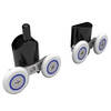 Конструкция раздвижных дверей состоит из панелей, соприкасающиеся стороны которых оформлены торцевыми резинками, служащими для плотного закрывания дверей. Двигаются панели по направляющим с помощью специальных колесиков малого диаметра. И направляющие и ролики скрыты за декоративными порожками.