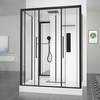 Раздвижные двери — это универсальная конструкция, занимающая минимум места в душевой кабине. Они удобны и функциональны, а также они предотвращают попадание воды за пределы пространства для мытья. Такая форма дверей может успешно герметизировать бокс, так что ни одна капля не окажется на полу. К тому же данная конфигурация не требует много места, что позволяет сэкономить пространство в ванной. Раздвижные двери не помешают уборке, ведь они не загораживают доступ к стенам и пространству душевой — в этом их неоспоримое преимуество.