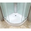 Форма поддона – четверть круга, такой вариант подходит для небольших и очень маленьких ванных. Душевой бокс монтируется в углу, максимально используя пространство. При этом кабинка остается удобной в эксплуатации, имеет достаточно места для установки душевого комплекта, небольшого раскладного сиденья при необходимости. Сегодня производители предлагают поддоны с формой четверть круга и для больших ванных. Такое решение повышает коэффициенты использования полезного пространства, позволяют правильно его организовать и сделать более практичным.