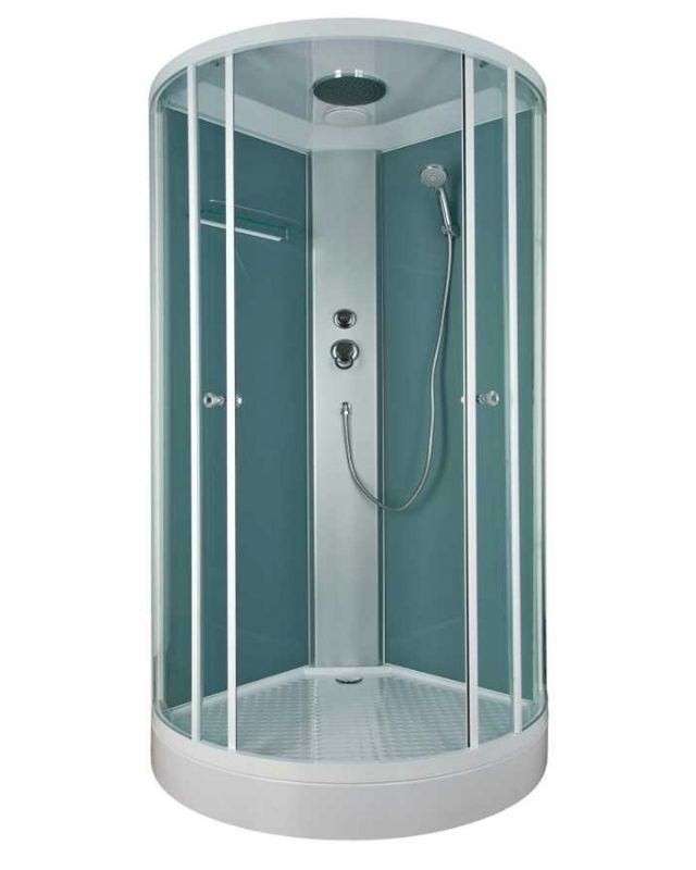 | Дополнительные характеристики | Полностенная, толщина стенок 5 мм, 2 створки двери, вариация передних стенок: прозрачные и полупрозрачные, тропический душ, классический смеситель, антискользящее покрытие |