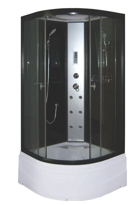 Душевая кабина Borneo HX-409В имеет удобное электронное управление. Габариты данной модели составляют ШхВхД (см): 100x215x100 см. Поддон имеет форму четверть круга, высоту 42 см, тип - высокий поддон. Материал изготовления поддона - акрил. Стекло используется тонированное (полупрозрачное). Кабина поставляется с крышей. Из особенностей данной модели стоит отметить, что у нее есть сиденье, есть гидромассаж. Наличие тропического душа: да.
