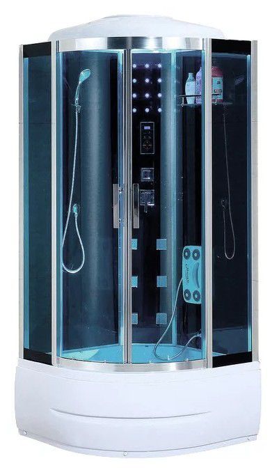 Душевая кабина Byon 2601 имеет удобное электронное управление. Габариты данной модели составляют ШхВхД (см): 90x215x90 см. Поддон имеет форму четверть круга, высоту 45 см, тип - высокий поддон. Материал изготовления поддона - акрил. Стекло используется тонированное (полупрозрачное). Кабина поставляется с крышей. Из особенностей данной модели стоит отметить, что у нее есть сиденье, есть гидромассаж. Наличие тропического душа: да.