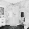 CHIKA901T (90*90*215-225) Душевая кабина без крыши, пятиугольный низкий поддон, центральная панель, тропический душ, ручной душ, полочка, прозрачное переднее стекло 6 мм, сверхпрозрачное заднее стекло 5 мм с белой окраской, сифон. Ceruttispa