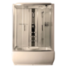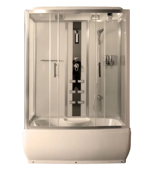 Оснащение Поддон, дозатор шампуней, полки, душевая лейка, 6 форсунок, верхний душ, ручной душ, сенсорный пульт управления, радио, дипенсер.