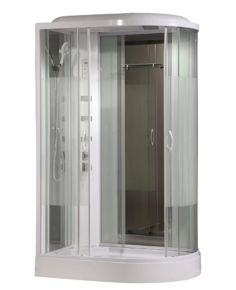 Дополнительные характеристики Ограждение полностенное, толщина передних стенок 5 мм, количество створок двери 2, задняя стенка - зеркальная, массаж - вертикальный гидромассаж, гидромассаж спины, сторона установки левая, мультимедиа и связь - радио.