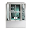 Кроме смесителя с переключателями и форсунок в кабине есть еще и блок управления. Он расположен на задней стенке душевой кабины и имеет вид области (прямоугольной, квадратной, овальной и т.д.) с кнопками или чувствительной сенсорной поверхностью. Может быть оснащен дисплеем. Иногда эту панель называют и пультом. Устройство позволяет: