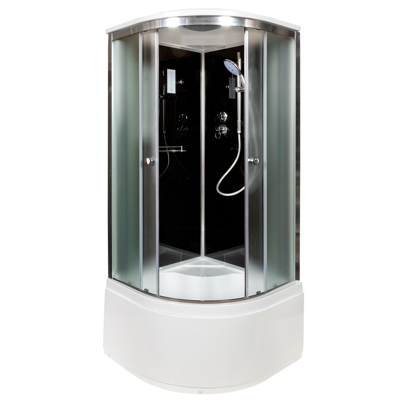 Душевая кабина DETO B10S+ эл. BLACK имеет удобное электронное управление. Габариты данной модели составляют ШхВхД (см): 100*220*100. Поддон имеет форму четверть круга, высоту 45 см, тип - высокий поддон. Материал изготовления поддона - акрил. Стекло используется с узором. Кабина поставляется с крышей. Из особенностей данной модели стоит отметить, что у нее есть сиденье, нет гидромассажа. Наличие тропического душа: да.