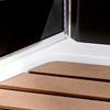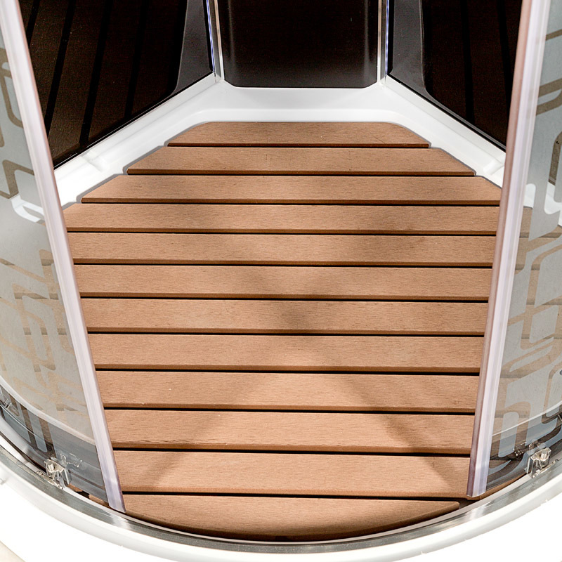 | Оснащение | зеркало, полки, душевая лейка, Настил из имитации дерева, LED-лента в световых панелях |