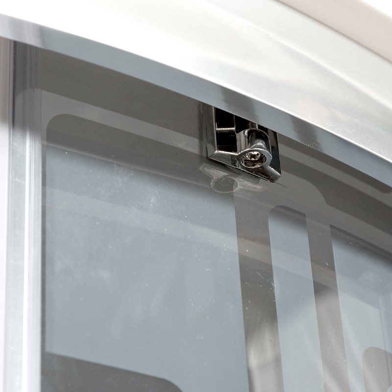 Двери для таких конструкций могут изготавливаться как из пластика, так и из других материалов, в том числе и из стекла. Поверхности бывают как полностью прозрачными, так и затемненными, матовыми, с узорами и эффектом капель — вы можете выбрать из множества вариантов.