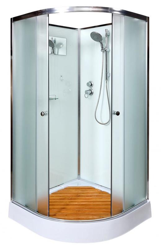 • БЕЗСИЛИКОНОВАЯ СБОРКА • РЕЗЬБОВЫЕ СОЕДИНЕНИЯ • ДВОЙНЫЕ РОЛИКИ • усиленный акриловый поддон • антискользящее покрытие • белые закаленные задние стекла толщиной 4 мм