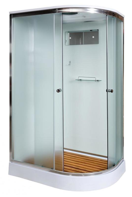 • передние стекла 4 мм, матовые • зеркало • полочка • крепление (крючок) для мочалки • штанга для гибкой лейки • гибкая лейка d140 мм • металлические двойные ( верхние и нижние) саморегулирующиеся безопасные ролики в пластиковом антикоррозийном кожухе • сифон с гидрозатвором