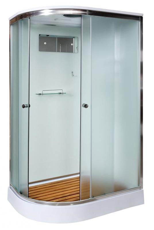 • передние стекла 4 мм, матовые • зеркало • полочка • крепление (крючок) для мочалки • штанга для гибкой лейки • гибкая лейка d140 мм • металлические двойные ( верхние и нижние) саморегулирующиеся безопасные ролики в пластиковом антикоррозийном кожухе • сифон с гидрозатвором
