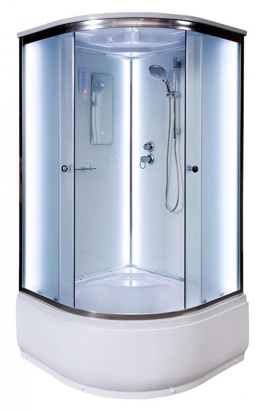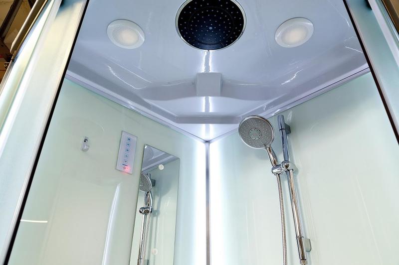 Душевая кабина Deto D10S LED имеет удобное электронное управление. Габариты данной модели составляют ШхВхД (см): 100*100*220. Поддон имеет форму четверть круга, высоту 45 см, тип - высокий поддон. Материал изготовления поддона - акрил. Стекло используется с узором. Кабина поставляется с крышей. Из особенностей данной модели стоит отметить, что у нее есть сиденье, нет гидромассажа. Наличие тропического душа: да.