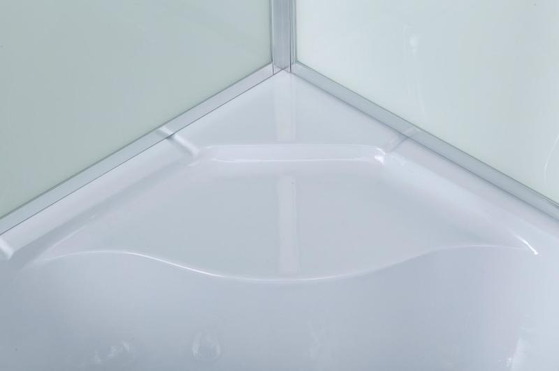 • БЕЗСИЛИКОНОВАЯ СБОРКА • РЕЗЬБОВЫЕ СОЕДИНЕНИЯ • ДВОЙНЫЕ РОЛИКИ • усиленный акриловый поддон • антискользящее покрытие • белые закаленные задние стекла толщиной 4 мм