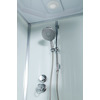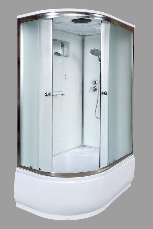Оснащение • БЕЗСИЛИКОНОВАЯ СБОРКА • РЕЗЬБОВЫЕ СОЕДИНЕНИЯ • ДВОЙНЫЕ РОЛИКИ • усиленный акриловый поддон • антискользящее покрытие • белые закаленные задние стекла толщиной 4 мм • передние стекла 4 мм, матовые • зеркало • полочка • крепление (крючок) для мочалки • шт