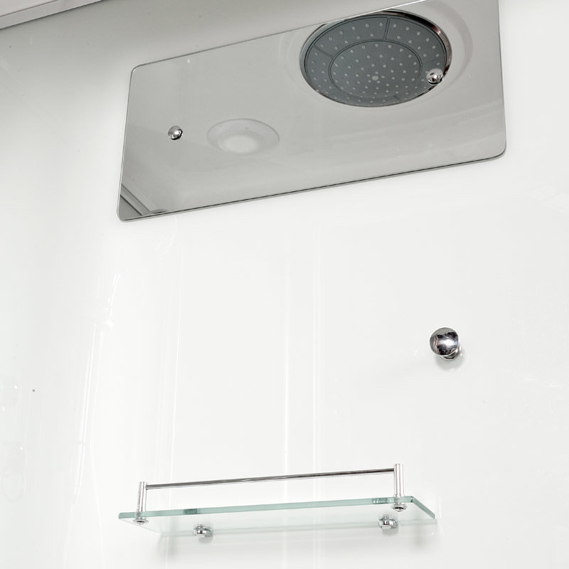 | Оснащение | Зеркало, полка, душевая лейка, вентиляция |