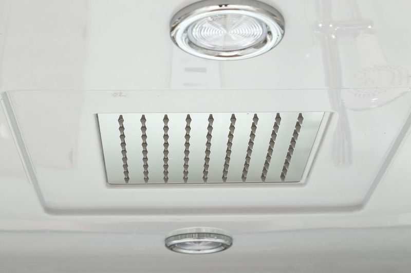Душевая кабина Deto D80S LED имеет удобное электронное управление. Габариты данной модели составляют ШхВхД (см): 80*80*220. Поддон имеет форму четверть круга, высоту 45 см, тип - высокий поддон. Материал изготовления поддона - акрил. Стекло используется с узором. Кабина поставляется с крышей. Из особенностей данной модели стоит отметить, что у нее есть сиденье, нет гидромассажа. Наличие тропического душа: да.