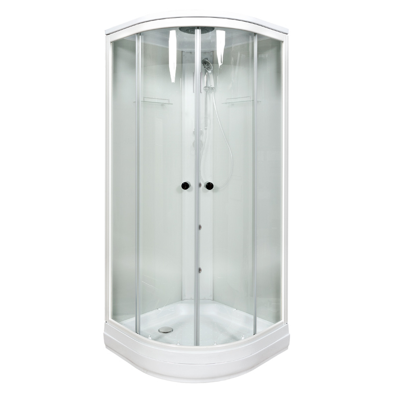 | Дополнительные характеристики | Акриловый поддон со съемным экраном, с дренажными отводами, усиленный оцинкованным металлическим каркасом. Антискользящее покрытие поддона. Регулируемые ножки поддона. Бесшумные двойные ролики из нержавеющей стали. Штанга для душевой лейки регулируемая по |