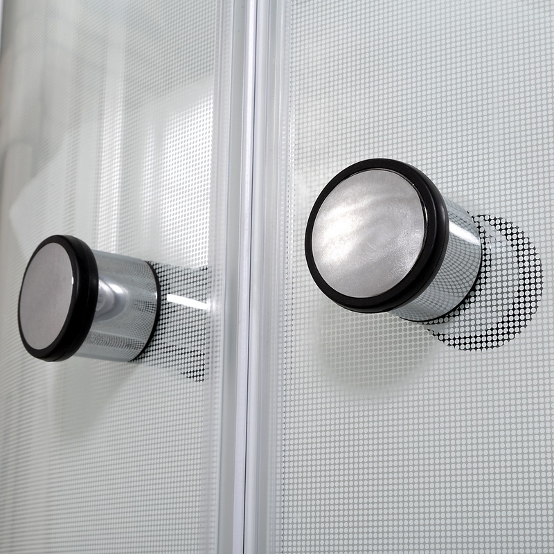 Раздвижные двери — это универсальная конструкция, занимающая минимум места в душевой кабине. Они удобны и функциональны, а также они предотвращают попадание воды за пределы пространства для мытья. Такая форма дверей может успешно герметизировать бокс, так что ни одна капля не окажется на полу. К тому же данная конфигурация не требует много места, что позволяет сэкономить пространство в ванной. Раздвижные двери не помешают уборке, ведь они не загораживают доступ к стенам и пространству душевой — в этом их неоспоримое преимуество.