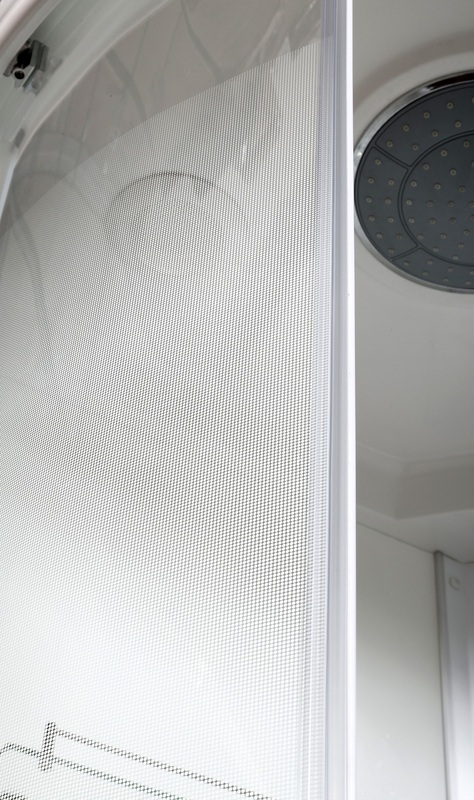 Двери для таких конструкций могут изготавливаться как из пластика, так и из других материалов, в том числе и из стекла. Поверхности бывают как полностью прозрачными, так и затемненными, матовыми, с узорами и эффектом капель — вы можете выбрать из множества вариантов.