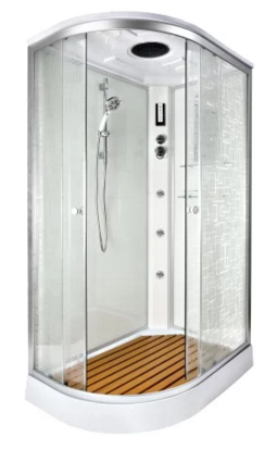 | Оснащение | Поддон, сифон, зеркало, полки, душевая лейка, вентилятор, радио, сенсорный пульт управления, щтанга для ручной лейки с регулировкой по высоте |