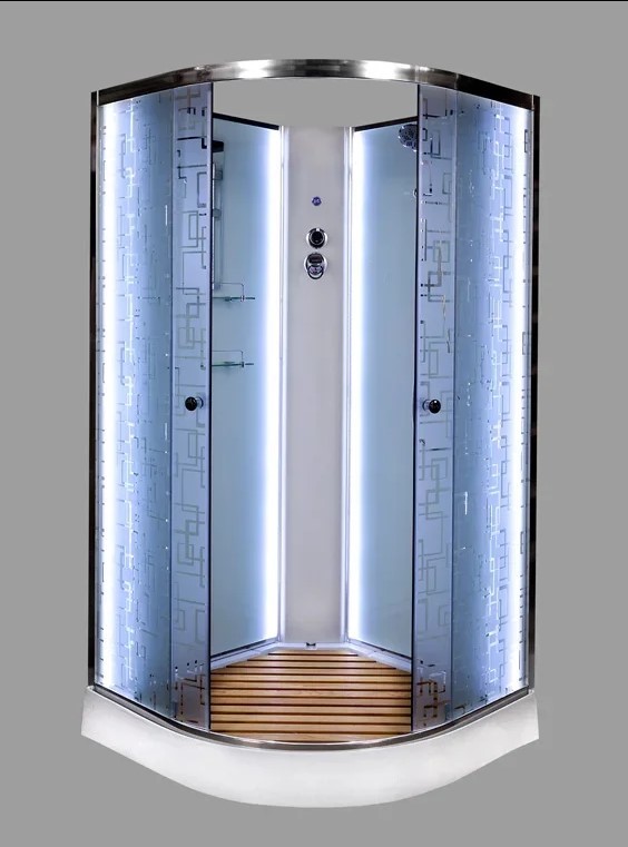 | Оснащение | Поддон, сифон, зеркало, полки, душевая лейка, штанга для ручной лейки с регулировкой по высоте, стильная антискользящая вставка с имитацией дерева |