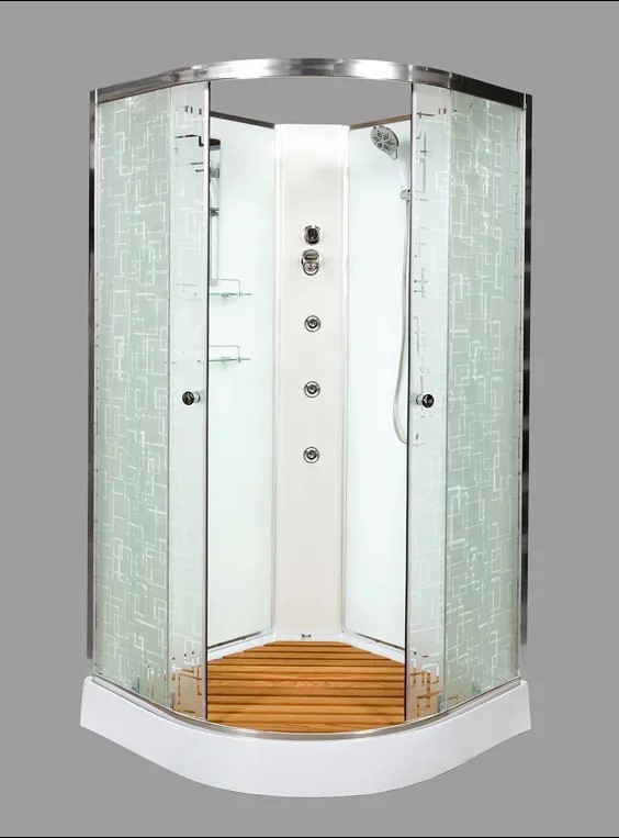| Оснащение | Поддон, сифон, зеркало, полки, душевая лейка, штанга для ручной лейки с регулировкой по высоте, стильная антискользящая вставка с имитацией дерева |