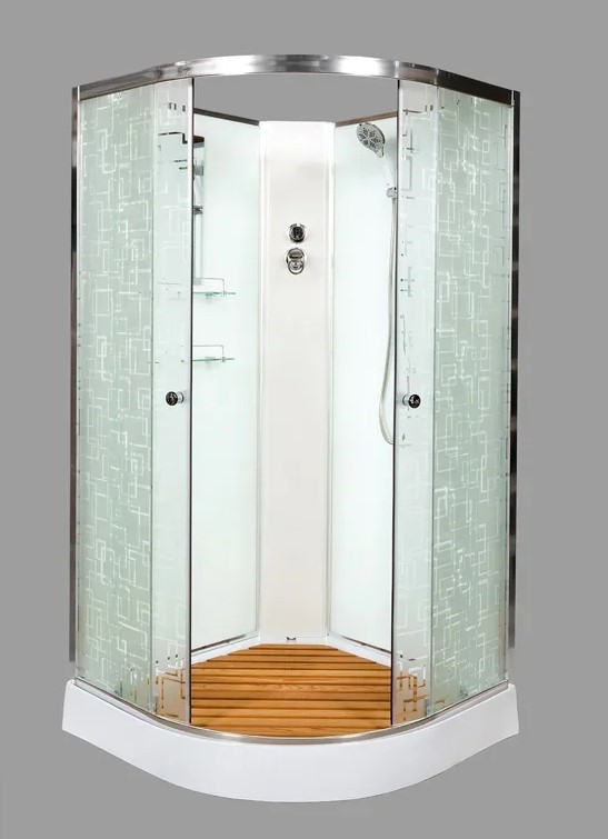 | Оснащение | Поддон, сифон, зеркало, полки, душевая лейка, штанга для ручной лейки с регулировкой по высоте, стильная антискользящая вставка с имитацией дерева |
